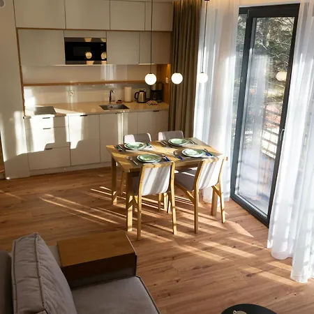 Az apartman kilátást nyújt a kertre, továbbá tárolót foglal magába. A Lesne Zacisze Apartman vendégei számára a fürdőszobában olyan kényelmi felszereléseket kínál, mint a törölközők.